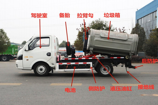 純電動(dòng)車廂可卸式垃圾車是在純電動(dòng)二類底盤的基礎(chǔ)上,加裝垃圾箱勾臂、液壓系統(tǒng),由機(jī)械、液壓
