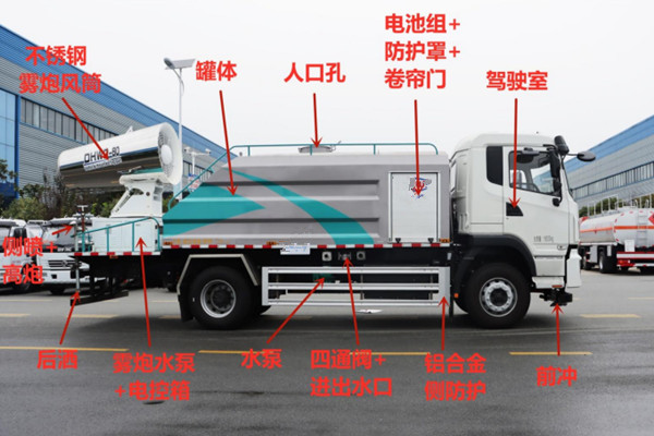 其它 | 1.;專用功能及裝置:水泵,霧炮,儲液箱,灑水系統(tǒng),主要用途為抑塵、降霾、除塵等;2.儲能裝置種類/單體型號/單體生產(chǎn)企業(yè)/總成生產(chǎn)企業(yè):①磷酸鐵鋰蓄電池/CB230/寧德時代新能源科技股份有限公司/寧德時代新能源科技股份有限公司、②磷酸鐵鋰蓄電池/CB220/寧德時代新能源科技股份有限公司/寧德時代新能源科技股份有限公司、③磷酸鐵鋰蓄電池/LF173/湖北億緯動力有限公司/湖北億緯動力有限公司;3.驅(qū)動電機類型為永磁同步電機,型號為TZ370XS027,額定功率為80kW,峰值功率為160kW;4.ABS系統(tǒng)生產(chǎn)廠家/型號分別為:①廣州瑞立科密汽車電子股份有限公司/型號:CM4XL-4S/4M;②西安正昌電子股份有限公司/型號:ZQFB-V;4.側(cè)防護和后防護材料為Q235,后防護斷面尺寸:60×120(mm),離地高度為450mm;連接方式:螺栓連接+焊接;5.選裝后部霧炮樣式,長度/后伸(mm)對應(yīng)關(guān)系:8160/420,7740/0;介質(zhì):抑塵劑,有效容積:8.58立方米,總?cè)萘?9.0立方米,罐體異型上沿總長:2295mm,下沿總長:3240mm,截面(寬*高mm):2300×1898 | ||