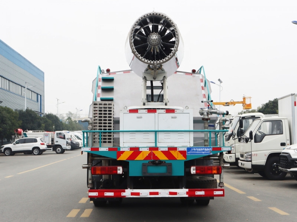 工作原理:采用自吸式雙級離心泵,效率高、灑水寬度大、水槍射程遠,低壓水泵由底盤變速器取力器通過傳動軸直接傳動。霧炮機組由底盤電池帶動霧炮風扇電機、不銹鋼多級離心泵,進行噴霧降塵工作。