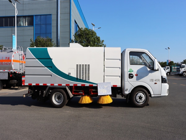 該掃路車采用純電動(dòng)二類底盤改裝、風(fēng)機(jī)、清水箱、垃圾箱、左右立掃、掃盤降塵系統(tǒng)、左右側(cè)噴高、氣動(dòng)系統(tǒng)、液壓系統(tǒng)、專用裝置電控系統(tǒng)和副車架等改裝而成。